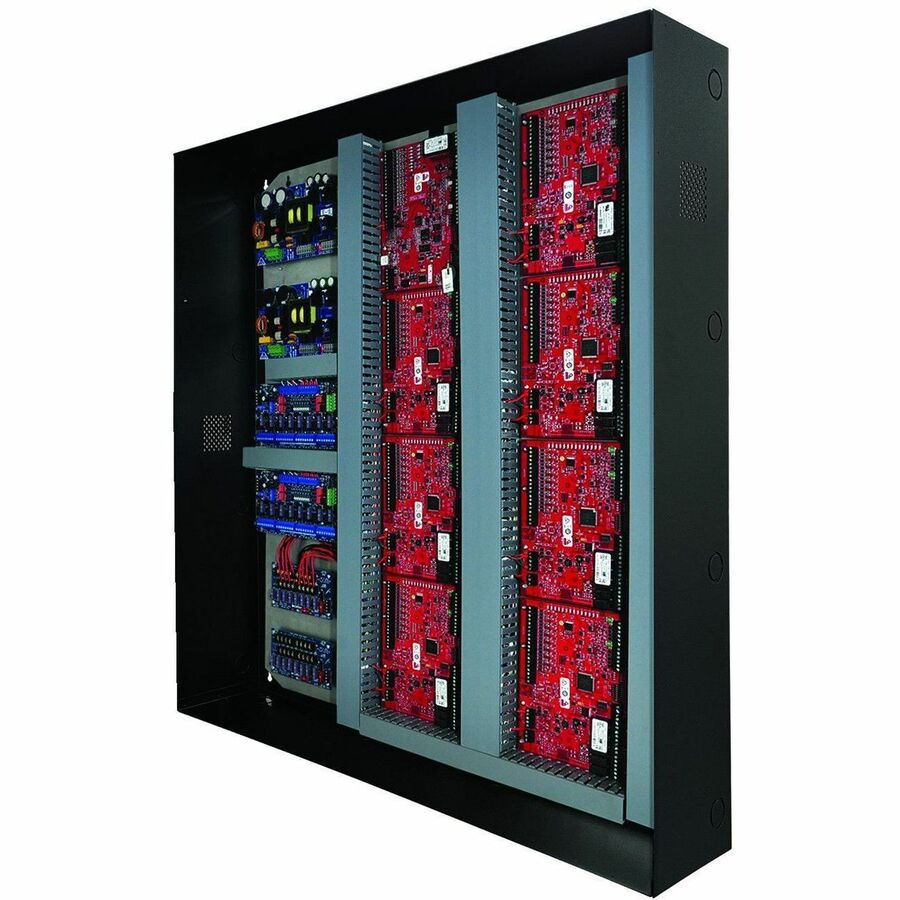 Altronix T3M77XK1 is a 16-door access and power integration kit which includes Altronix power and sub-assemblies along with factory installed wire management and wire assemblies that are pre-configured with terminal blocks for Mercury hardware. This unit provides ample power and dual voltage outputs to support Mercury platform controllers and locking devices. The T3M77XK1 accommodates one (1) Intelligent Dual Reader Controller and seven (7) Dual Reader Interface Modules. Trove Plus simplifies field installations and provides reliable, robust critical power and control for the most demanding applications.