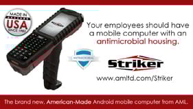 AML's development of American-Made, Android-based mobile computers continues with the Striker Enterprise Mobile Computer. A smaller, more lightweight version of their popular Scepter mobile computer, the Striker delivers on affordability, durability and versatility. The first in its class of mobile computers to be produced with an antimicrobial housing to prevent the growth and spread of microorganisms, as well as UV inhibitors to prevent deterioration in the event of prolonged UV-C exposure, commonly used for disinfection purposes. The pre-loaded applications allow administrators to clone multiple units quickly, restrict user access to specific tasks, or control the behavior of the barcode scanner to maximize efficiency.
