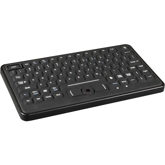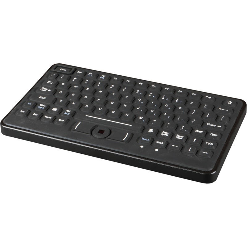 Completely sealed with NEMA 4-rated rubber top casing, this corded, backlit keyboard is washable, suitable for rinsing with cleaning and disinfection fluids. A convenient 'lockdown mode,' indicated by a brightly lit CLEAN KEY, and an easy-to-clean surface allows users to clean at any interval with minimal downtime. An Integrated Optical Pointing Device provides for high-speed motion detection and ease of use, even in small, limited spaces. The selectable backlit key field allows 4-levels of brightness.