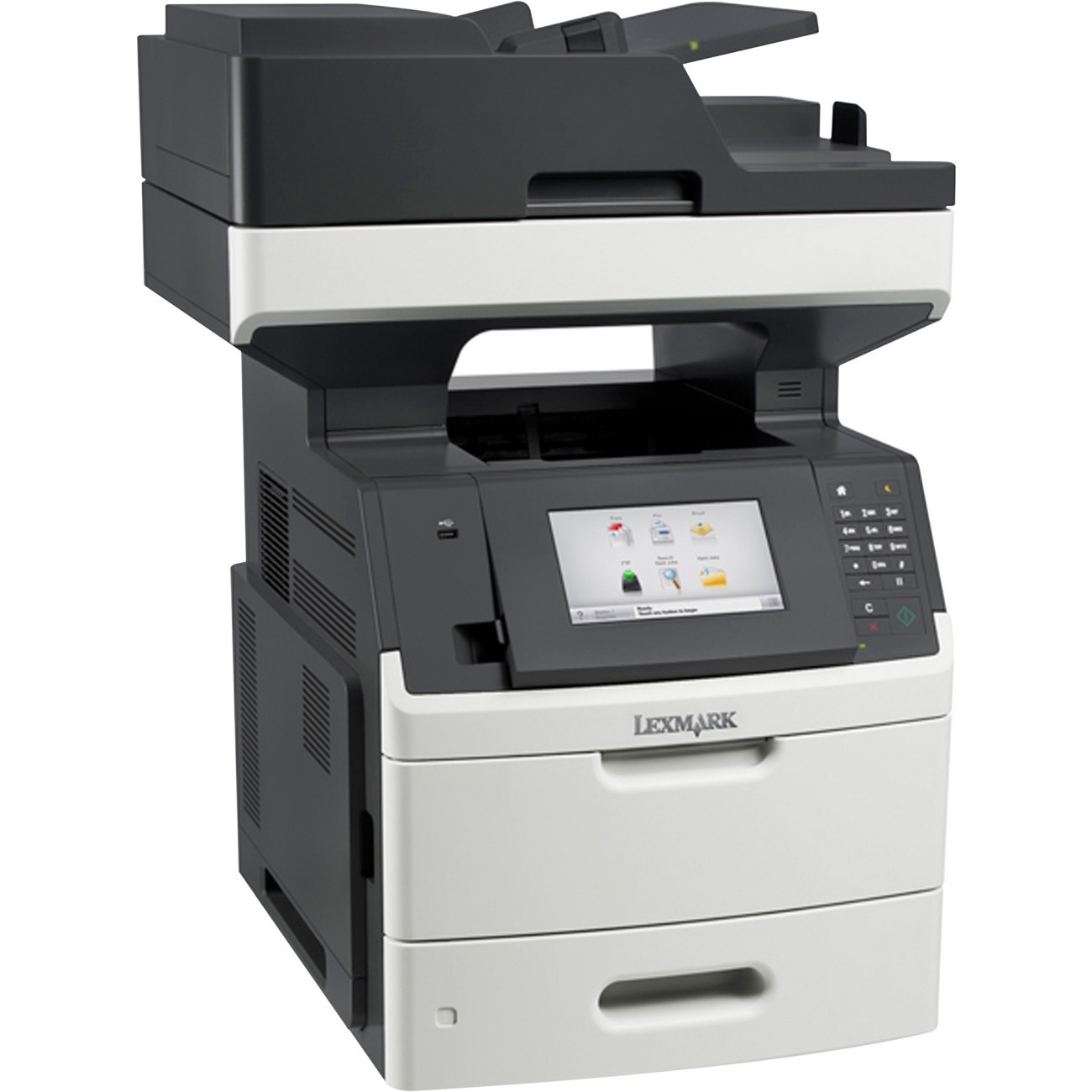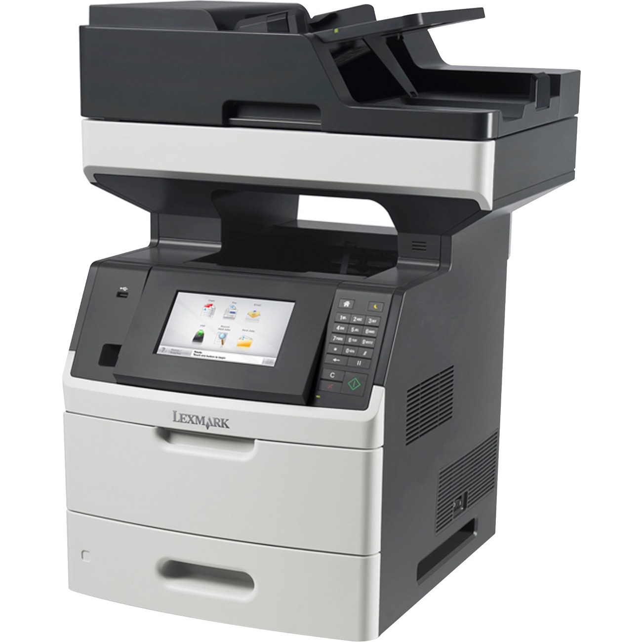 Lexmark MX711 MX711DHE Laser Multifunction Printer - Monochrome - Copier/Fax/Printer/Scanner - 70 ppm Mono Print - 1200 x 1200 dpi Print - Automatic Duplex Print - Upto 300000 Pages Monthly - 650 sheets Input - Color Scanner - 600 dpi Optical Scan - Monochrome Fax - Gigabit Ethernet Ethernet - USB